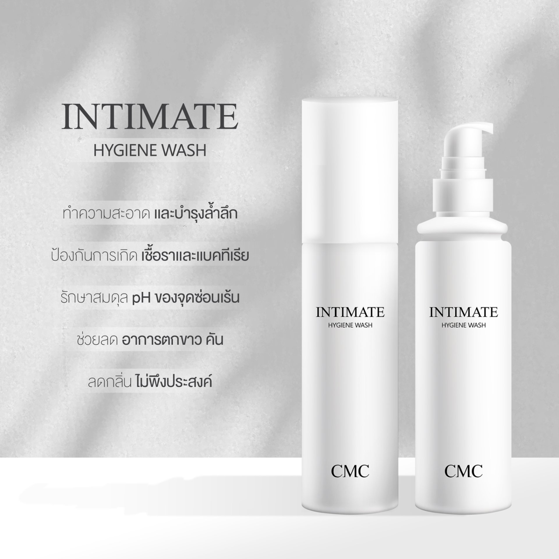 CMC Intimate ผลิตภัณฑ์ทำความสะอาดจุดซ่อนเร้น สำหรับดูแลผิวและบำรุงผิวบริเวณจุดซ่อนเร้นโดยเฉพาะ ช่วยลดการเกิดตกขาว และยับยั้งการเกิดกลิ่นที่บริเวณจุดซ่อนเร้น จากสารสกัดธรรมชาติ อ่อนโยนต่อผิว ไม่แต่งกลิ่นน้ำหอม