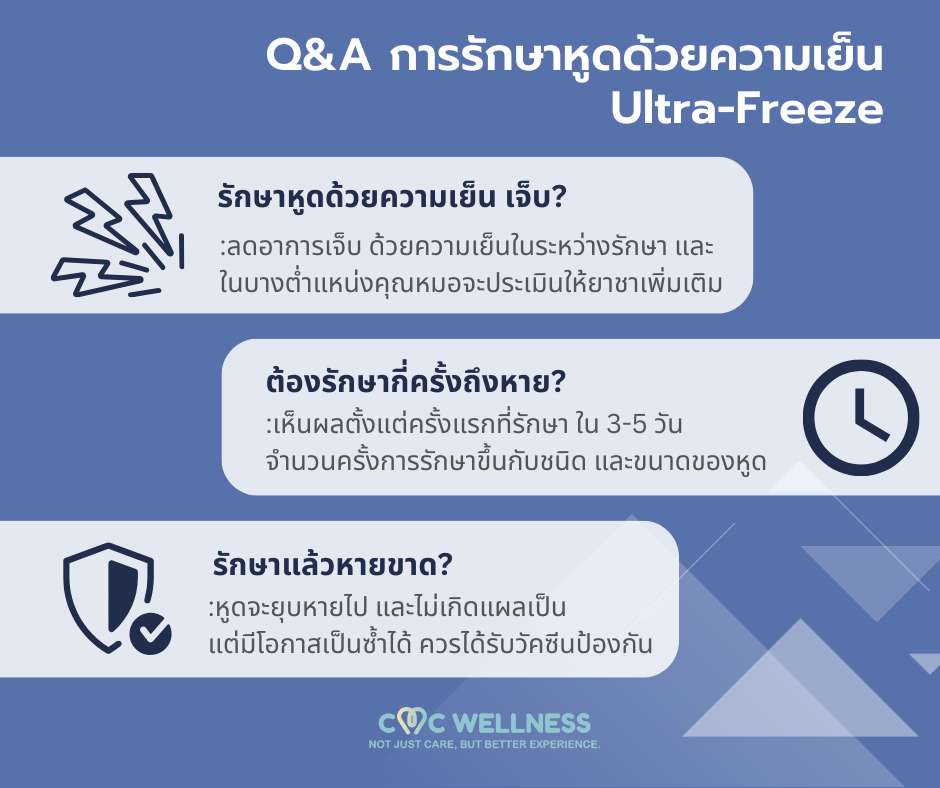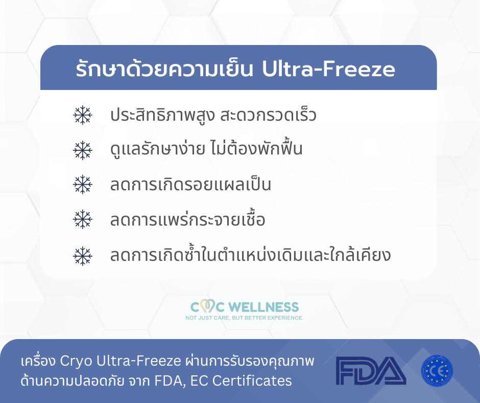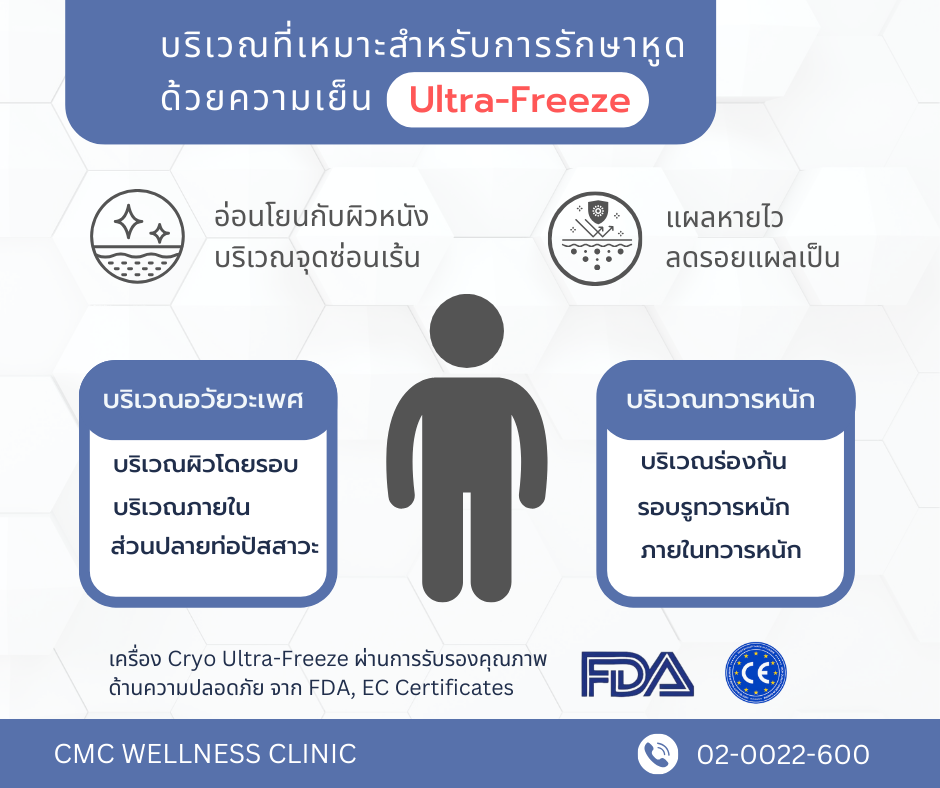 การพ่นไอเย็นที่หูดโดยตรงให้เกิดอุณหภูมิศูนย์กลางต่ำกว่าจุดเยือกแข็ง